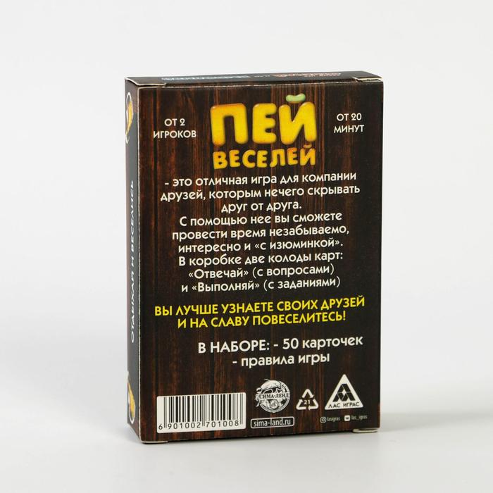 Купить игра для компании "пей веселей" 50 карт от 180 руб. с доставкой до пункта выдачи в Богородске. Интернет магазин ДекаМаркет. Оплата при получении.